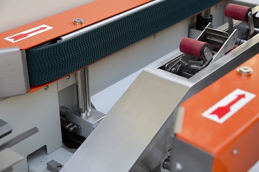 7、下部的膠帶作業(yè),在側(cè)面輸送帶驅(qū)動下通過機器,有膠帶分割器迅速簡便地貼上膠帶。